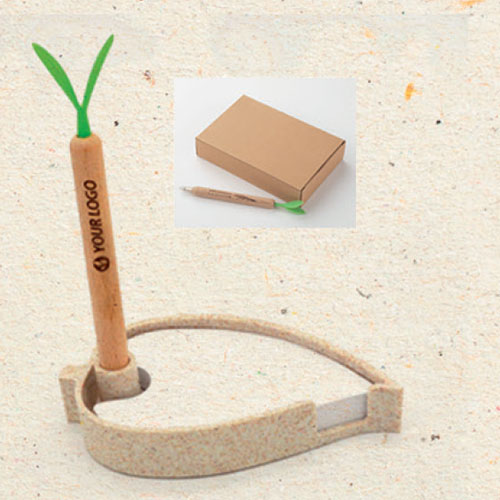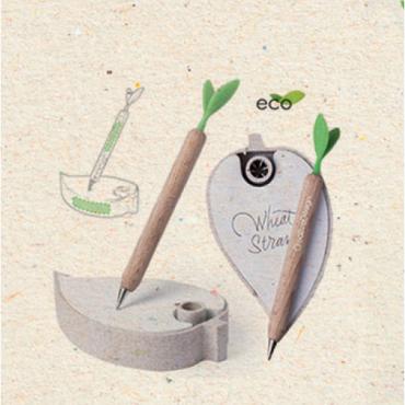 Post-it et stylo en paille de blé écologique,1 pièce, en forme de feuille avec stylo en bois, cadeau de papeterie de bureau.