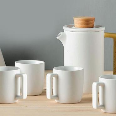 Lot de pichets en céramique avec couvercle et 4 tasses Pichet à eau Carafe (Couleur: Blanc, Taille: 620 ml)