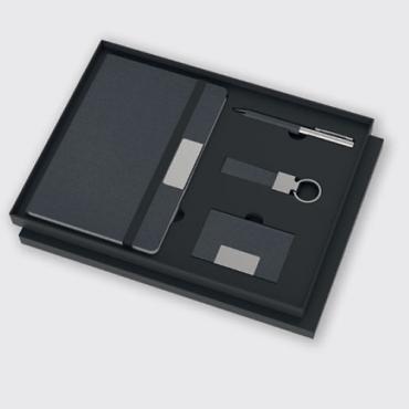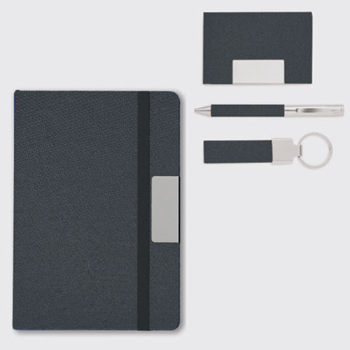 Notebook + Porte carte de visite + stylo métallique + Porte-clés
