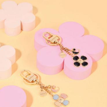 Le porte-clés "Vivienne" en pastel arc-en-ciel et or apporte une touche ludique et colorée à la collection. Il présente un charmant mélange d'éléments, dont une fleur, l'emblématique "C" et une médaille ronde "Cacharel" délicatement gravée.