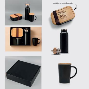 MUG: 100 x Ø 50/Lunch box:164 x 120 x 60mm/Bouteille: 220 x Ø70