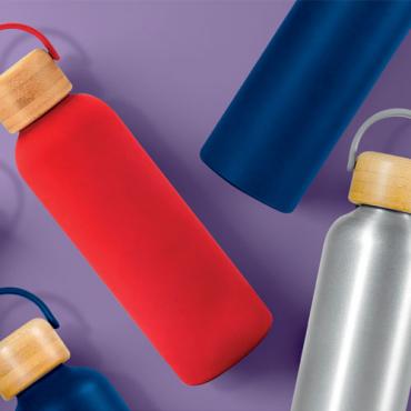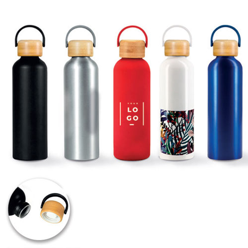Intérieur en alluminium. Le bouchon de la bouteille en bambou avec poignée pratique