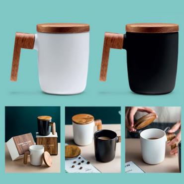 La tasse élégante de 350 avec une poignée pratique et un couvercle en bambou.