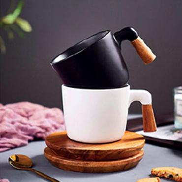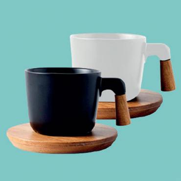 Tasse céramique avec sous tasse en bambou