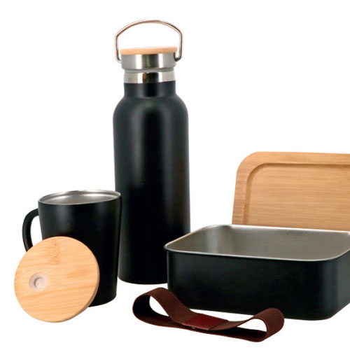 Lunch box + mug + bouteille isotherme bambou